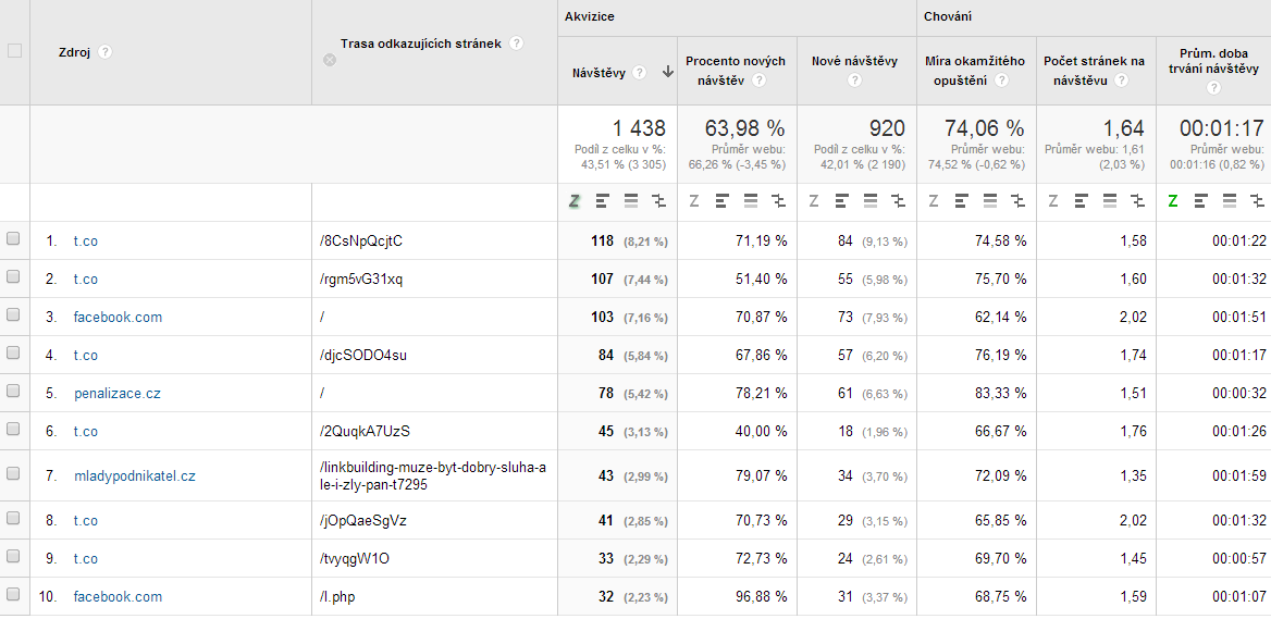 Nyní máme data o zpětných odkazech a jejich výkonu. Využití je čistě na vás, ale níže uvedu pár příkladů které občas sám dělám: